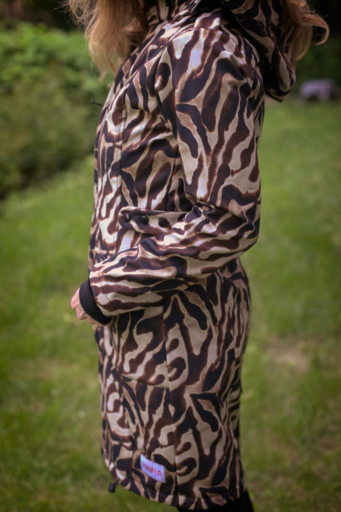 5 in 1 kabát stílusos nőknek, kismamáknak és hordozni vágyó anyukáknak készült. A kabát egyaránt kényelmes és hasznos bárkinek, várandósság alatt, majd elöl- és hátulhordozáshoz. A nagy kapucni könnyen lecsatolható, a bébi csuklya közvetlen a baba fejére helyezhető, így nem gátolja a mozgásban, nézelődésben és a vállpánthoz rögzíthető. A bababetét könnyen behelyezhető elölre és hátulra is. Ezt betétet szélesebb részével lefelé kell behelyezni várandósság alatt, amíg a baba hordozásánál a szélesebb rész legyen fent. A betéten található zseb még közelebb hoz babánkhoz. Ujjpasszéi harmonizálnak a kabát színével és melegen tartják a kezeket.